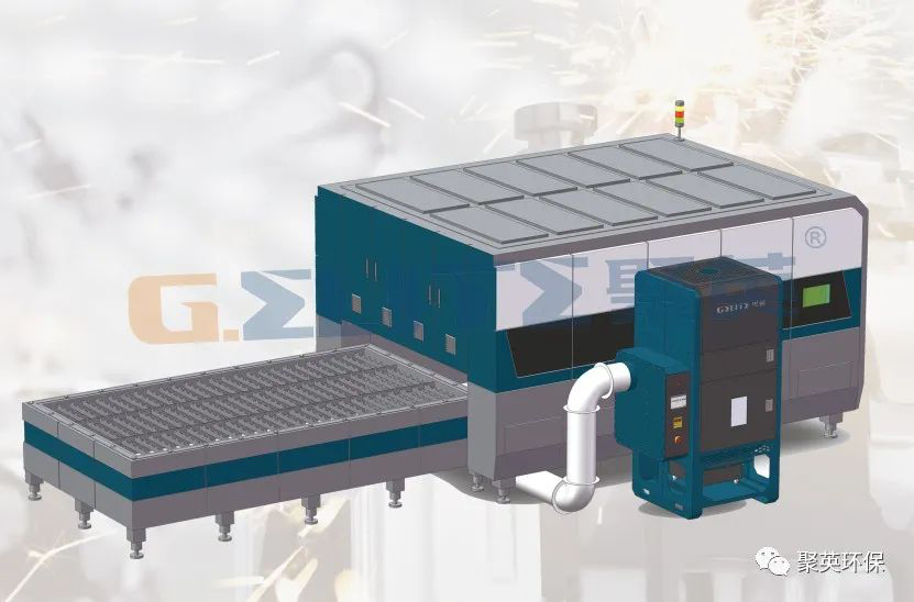 GES系列激光切割煙塵凈化裝置(激光切割煙塵凈化設備),預留排煙口一體化對接,通過內部風門切換,煙塵氣流在風機作用下從切割機預留出風口通過管道進入火星捕集器,攔截帶火星大顆粒,粒徑較小的塵埃隨氣流通過高效濾芯,最后經由風機排出,凈化效率達到99.9%,濾芯表面塵埃聚集,清灰系統啟動,利用分室反吹作用,將濾芯表面堆積煙塵吹落,達到清灰再利用的效果,由此更好解決激光切割煙塵治理難題。