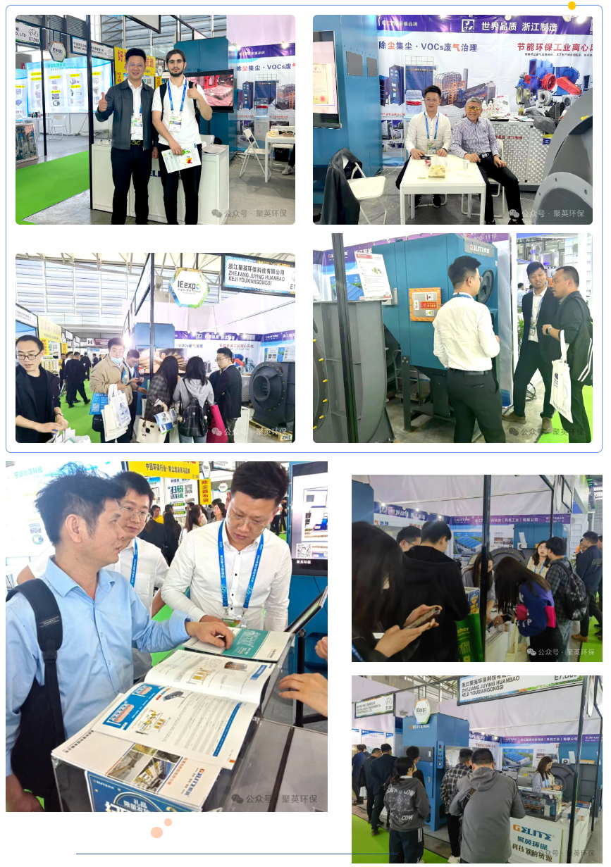 此次展會,浙江聚英帶來了全新智能、安全、高效的工業(yè)除塵集塵治理裝備、工業(yè)VOCs廢氣治理裝備和環(huán)保工藝配套離心風(fēng)機(jī)等,每一款產(chǎn)品都代表著浙江聚英在環(huán)保科技領(lǐng)域的技術(shù)突破。