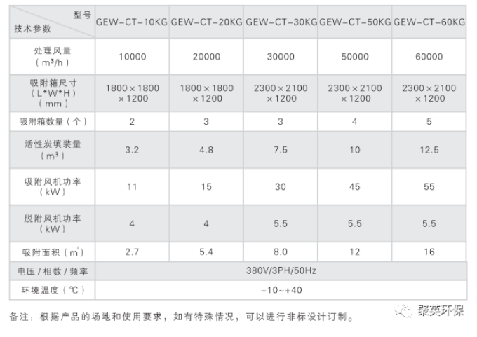 活性炭吸附+CO催化燃燒工程機參數(shù)規(guī)格表