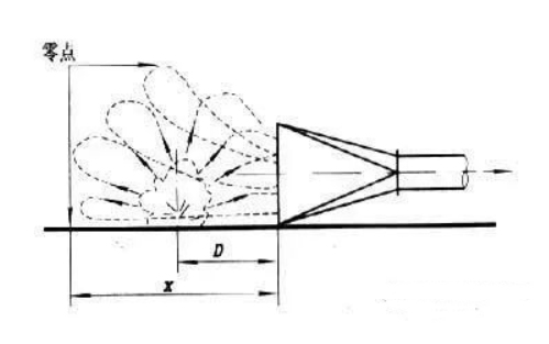 通:就是廢氣能暢通地被吸走。通常物料從高處落地時,會向四面散發,此時,廢氣的散發速度稱為飛揚速度。物料落點處的廢氣飛揚速度最大。隨著廢氣散發距離的增加,達到一定距離后,其散發速度為零。當廢氣散發速度較大時,不容易被捕集。而散發速度達到零時,廢氣被捕集就容易得多了。速度達到零點的那一點稱為控制點,控制點到集氣罩口的距離為x,廢氣源至集氣罩口的距離為D,如下圖所示。